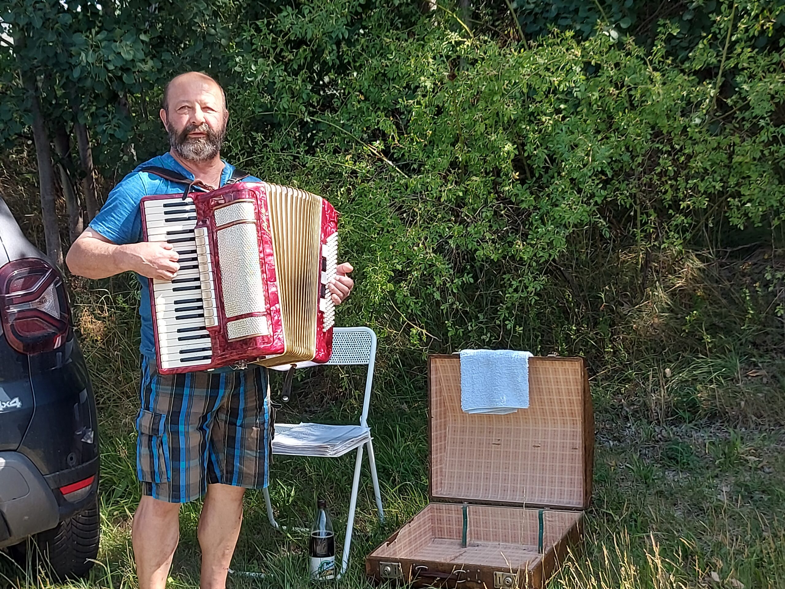 Jens spielte für uns wieder fröhliche und nachdenkliche Lieder und der alte wuschliche Huskie sah uns dabei tief in die Augen.