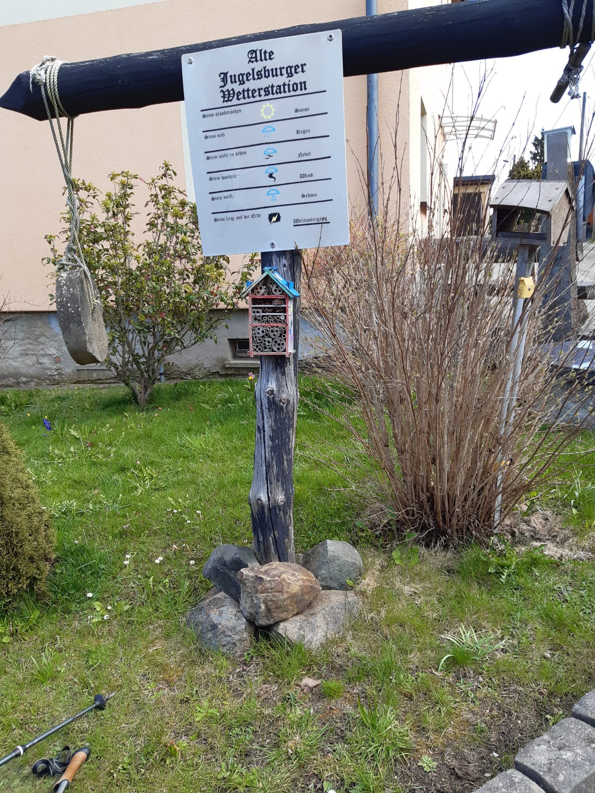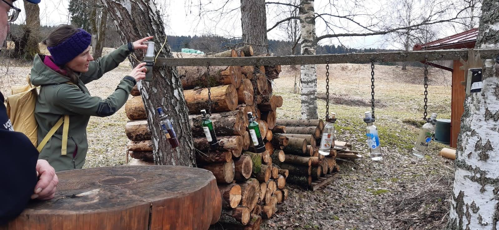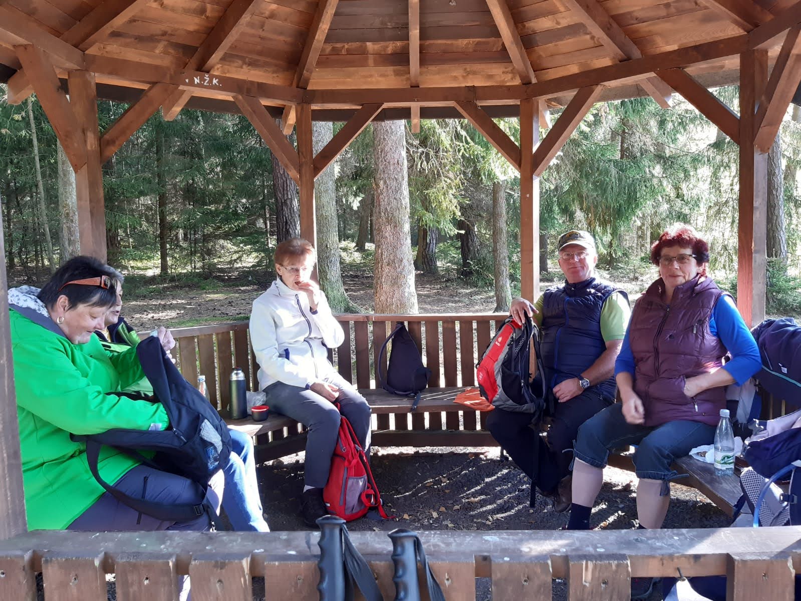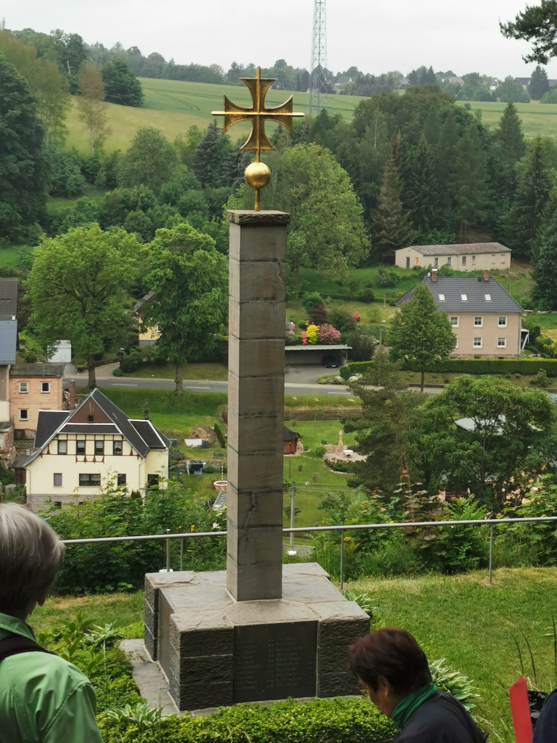 Mit Start am Sportplatz wanderten wir über den Steinmauerweg zum Rastplatz an der Kastanie, wo wir Schutz vor einem kurzen Schauer fanden und uns für den folgenden Aufstieg auf den Platzerberg stärkten. Kurzentschlossen machten wir es uns zur Aufgabe, auf der höchsten Erhebung der Gemeinde Triebel ein Gipfelkreuz zu errichten. Mit Säge und Schnitzmesser wurde hier schon kräftig gewerkelt, gemeinsam angepackt und gelacht. Vielleicht hat zukünftig der ein oder andere Kammwegwanderer Freude an unserer einzigartigen Konstruktion.