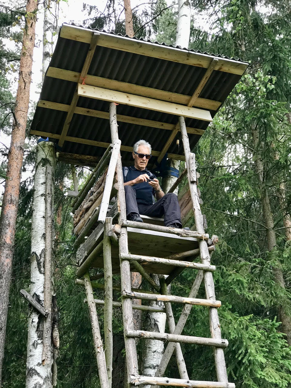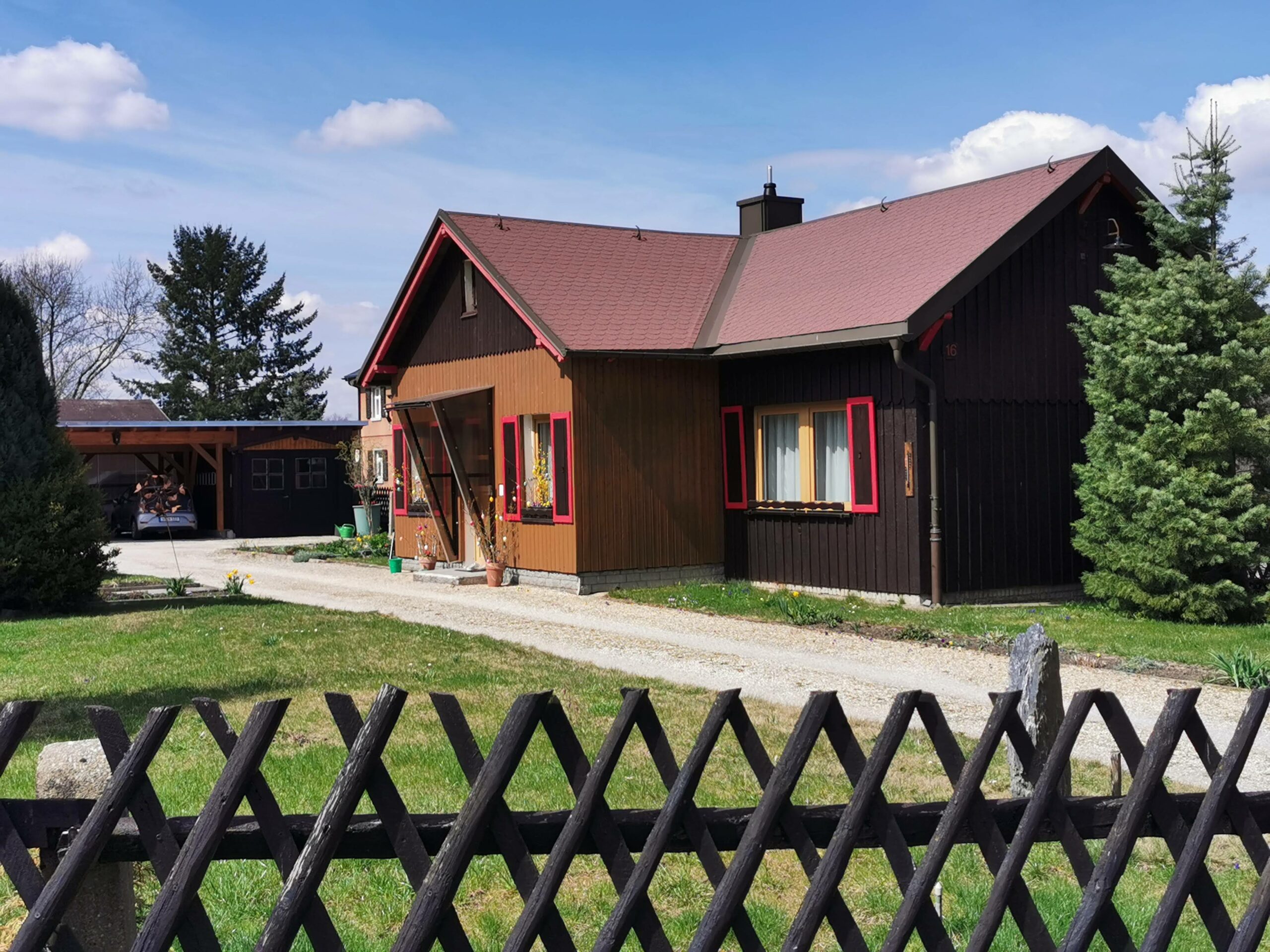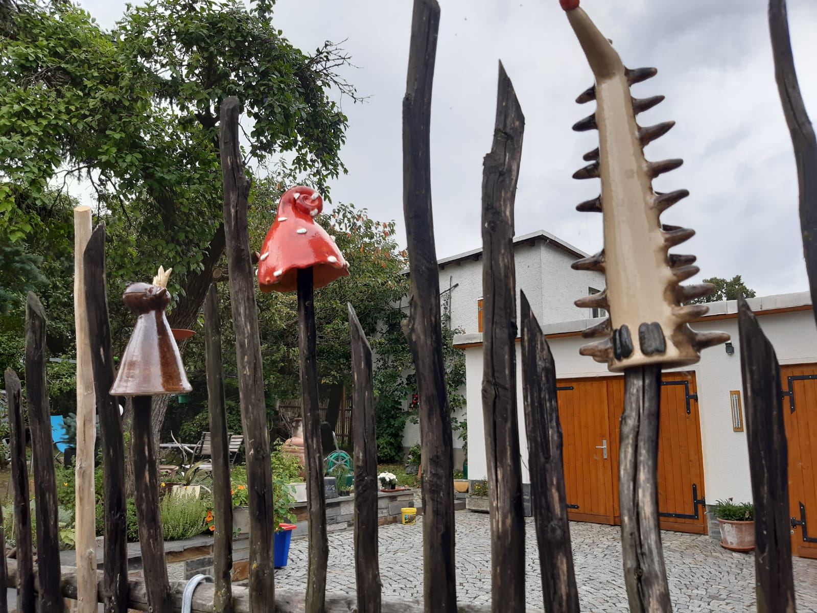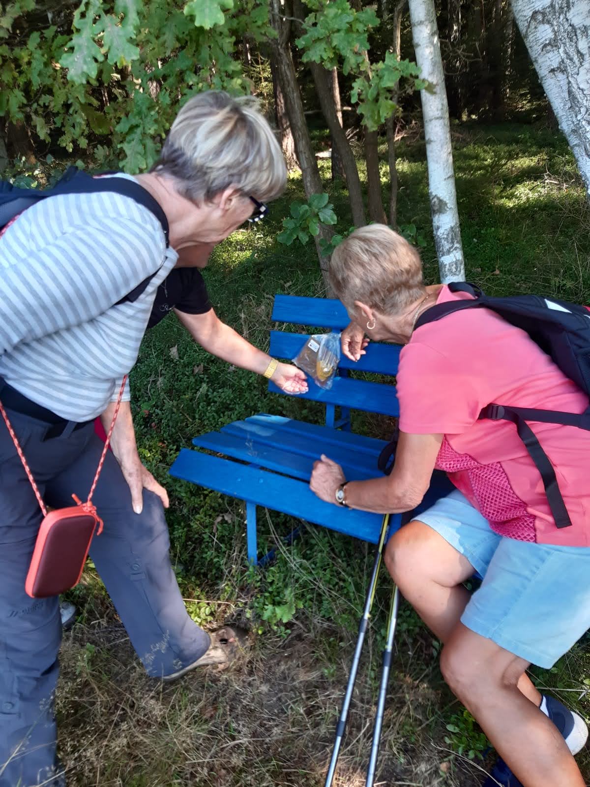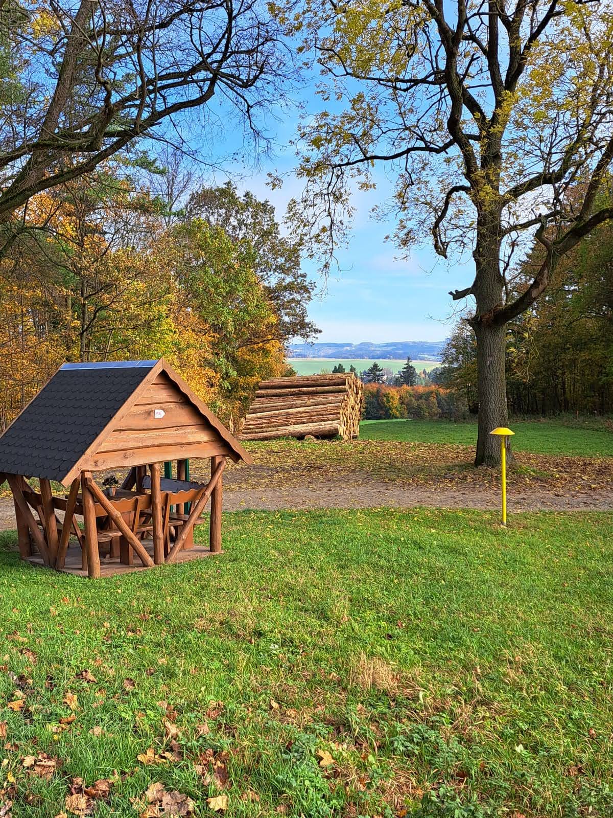 Mit Start am Sportplatz wanderten wir über den Steinmauerweg zum Rastplatz an der Kastanie, wo wir Schutz vor einem kurzen Schauer fanden und uns für den folgenden Aufstieg auf den Platzerberg stärkten. Kurzentschlossen machten wir es uns zur Aufgabe, auf der höchsten Erhebung der Gemeinde Triebel ein Gipfelkreuz zu errichten. Mit Säge und Schnitzmesser wurde hier schon kräftig gewerkelt, gemeinsam angepackt und gelacht. Vielleicht hat zukünftig der ein oder andere Kammwegwanderer Freude an unserer einzigartigen Konstruktion.