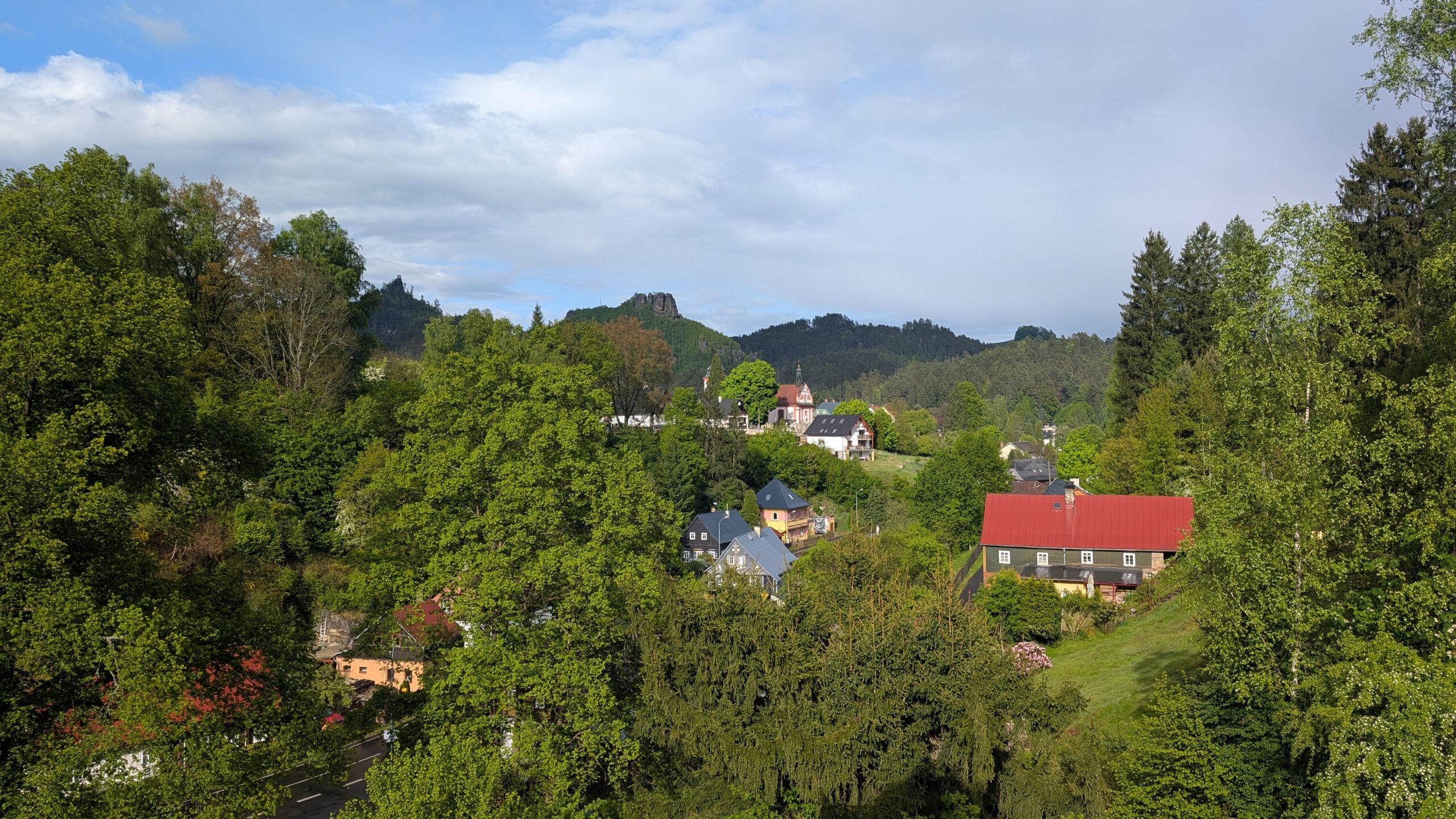 Von unserer Pension, direkt an der Elbe, führte uns die Route zunächst durch Tetschen. Hier wurden noch letzte Einkäufe für den Tag erledigt, bevor wir die Stadt verließen und die Aussichtspunkte hoch über dem Elbtal erreichten. Belohnt wurden wir hier mit wunderschönen Aussichten auf die Stadt und die Elbe. In der Ferne grüßte der Hohe Schneeberg und auf Sächsischer Seite der Zirkelstein und später der Große Zschirnstein. In Arnsdorf bot sich eine kurze Einkehr an. Die letzten Kilometer bis Rosendorf liefen dadurch wie am Schnürchen.