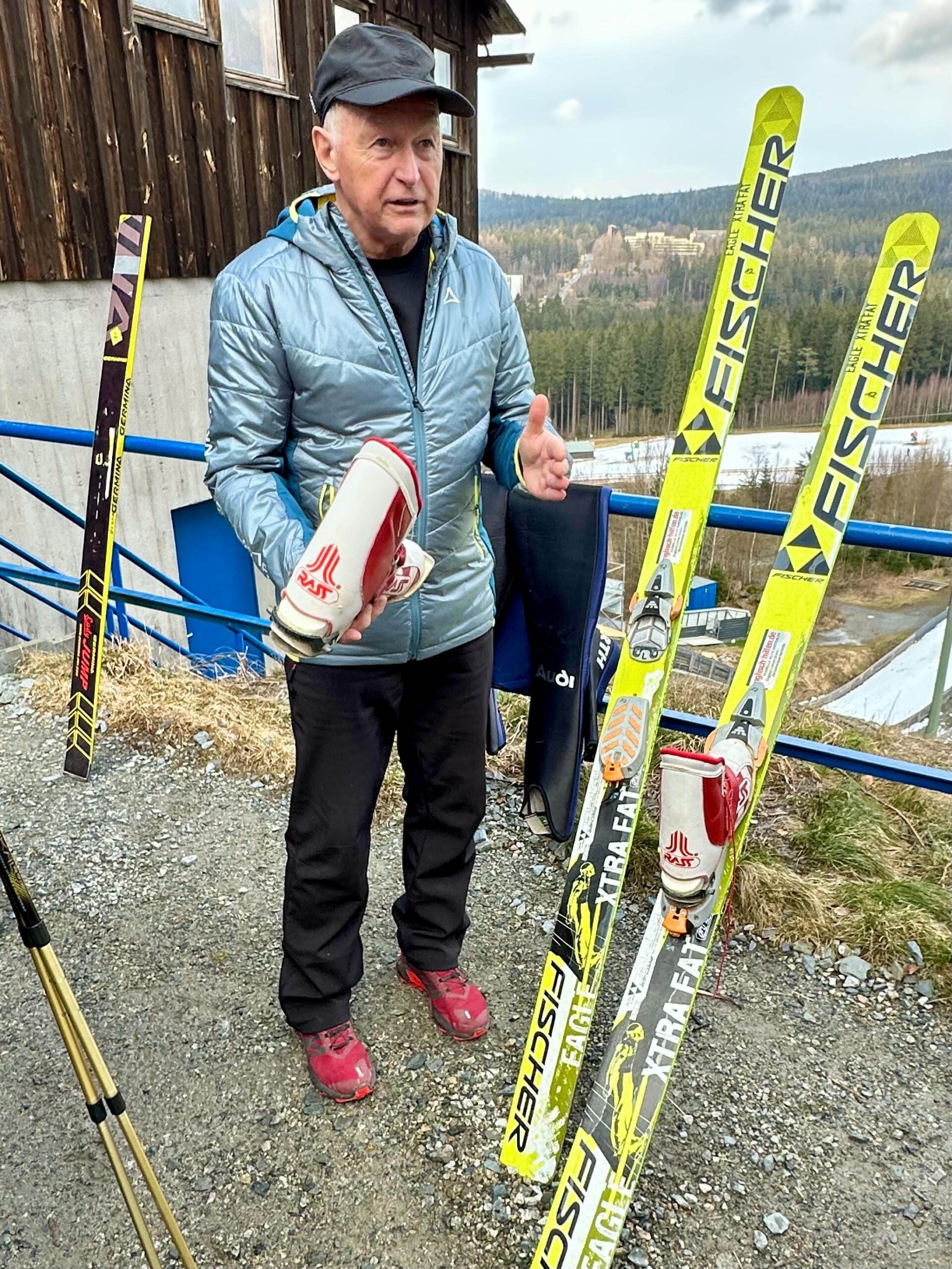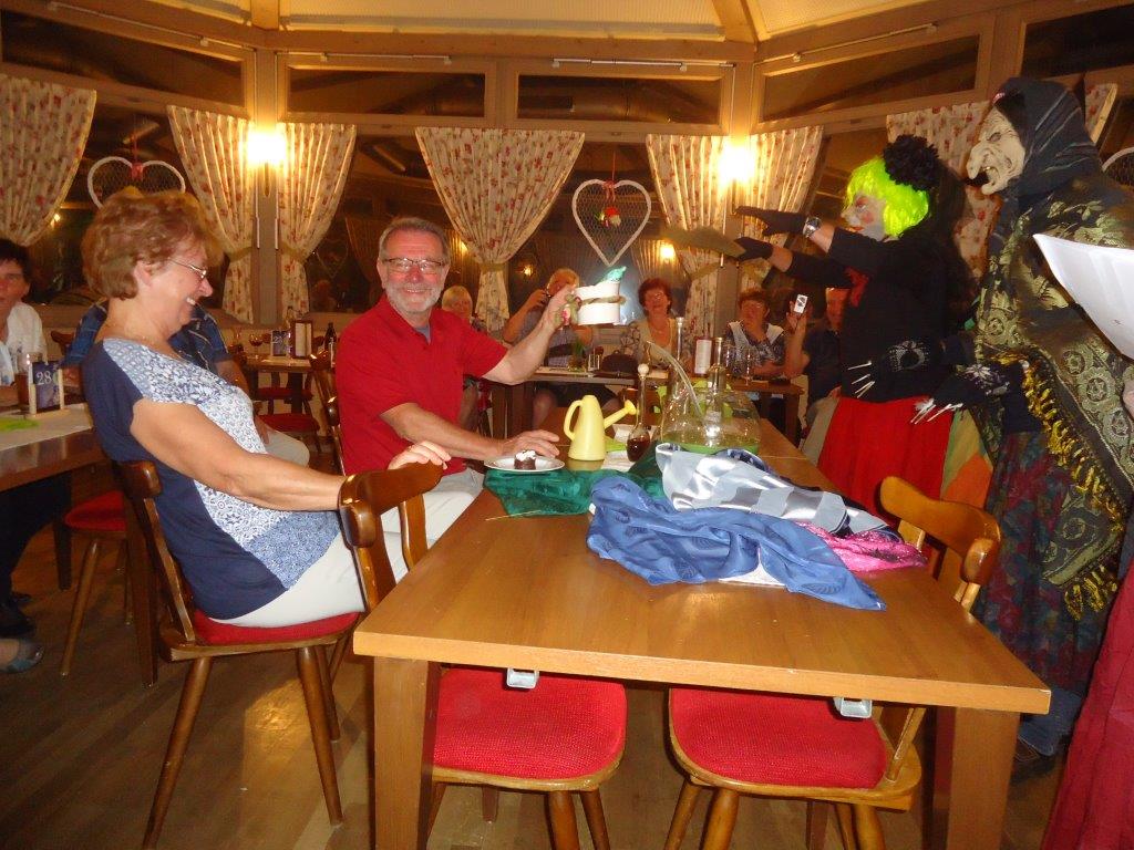 Am Abend waren alle wieder fröhlich im Hotel Malamut bei gutem Essen und Trinken vereint. Helmut Möllemann erinnerte durch sein Auftreten im blauen Outfit an das 20-jährige Jubiläum der 5-tägigen Skikammwanderung Zinnwald –Muldenberg Anfang Februar 1999. Viele dachten dabei: „Waren wir mal fit“.
