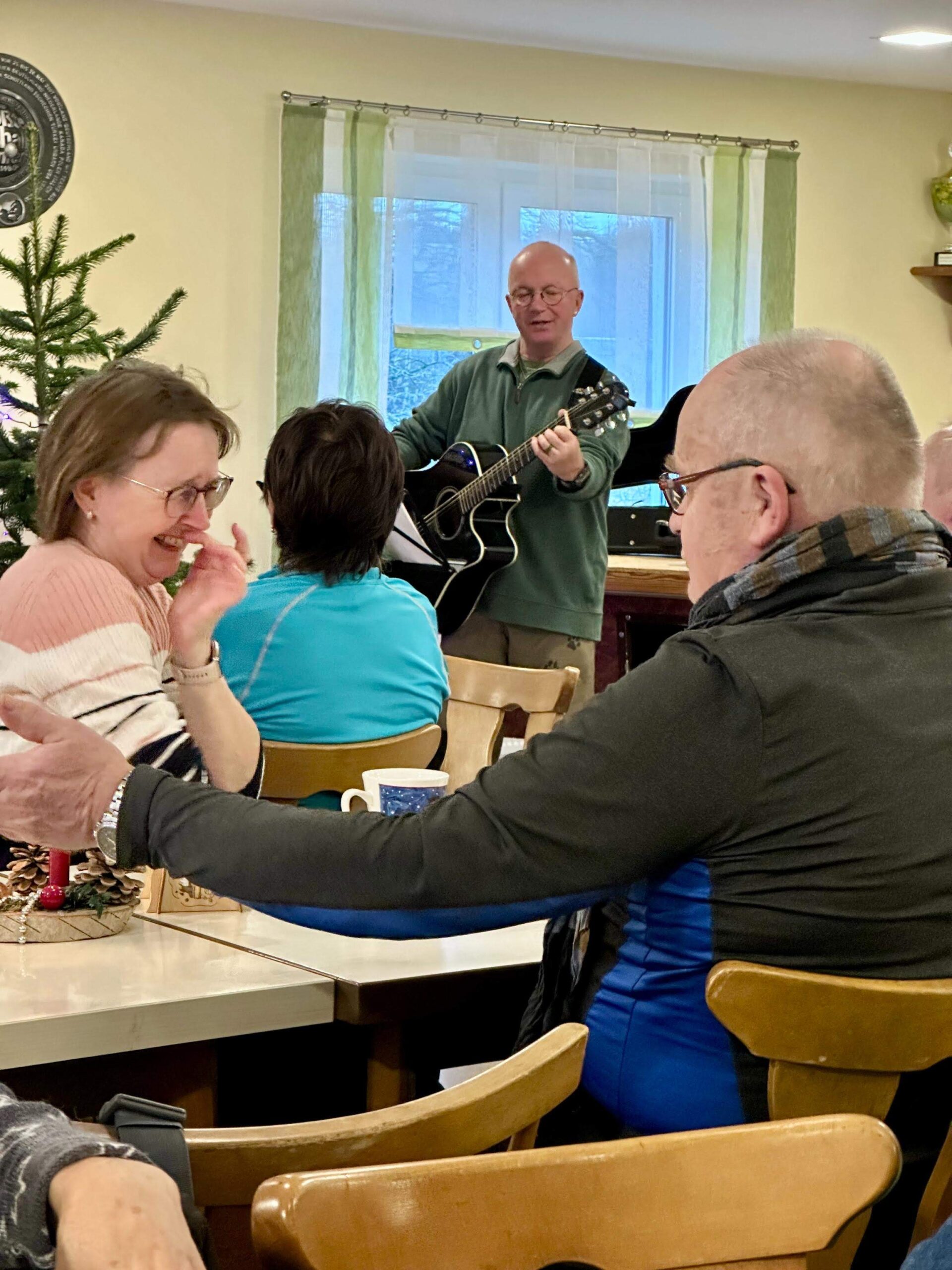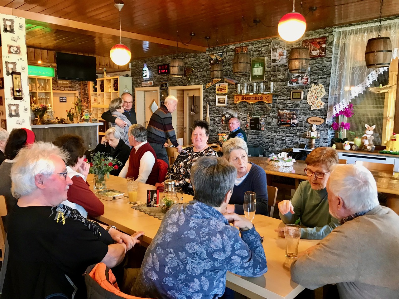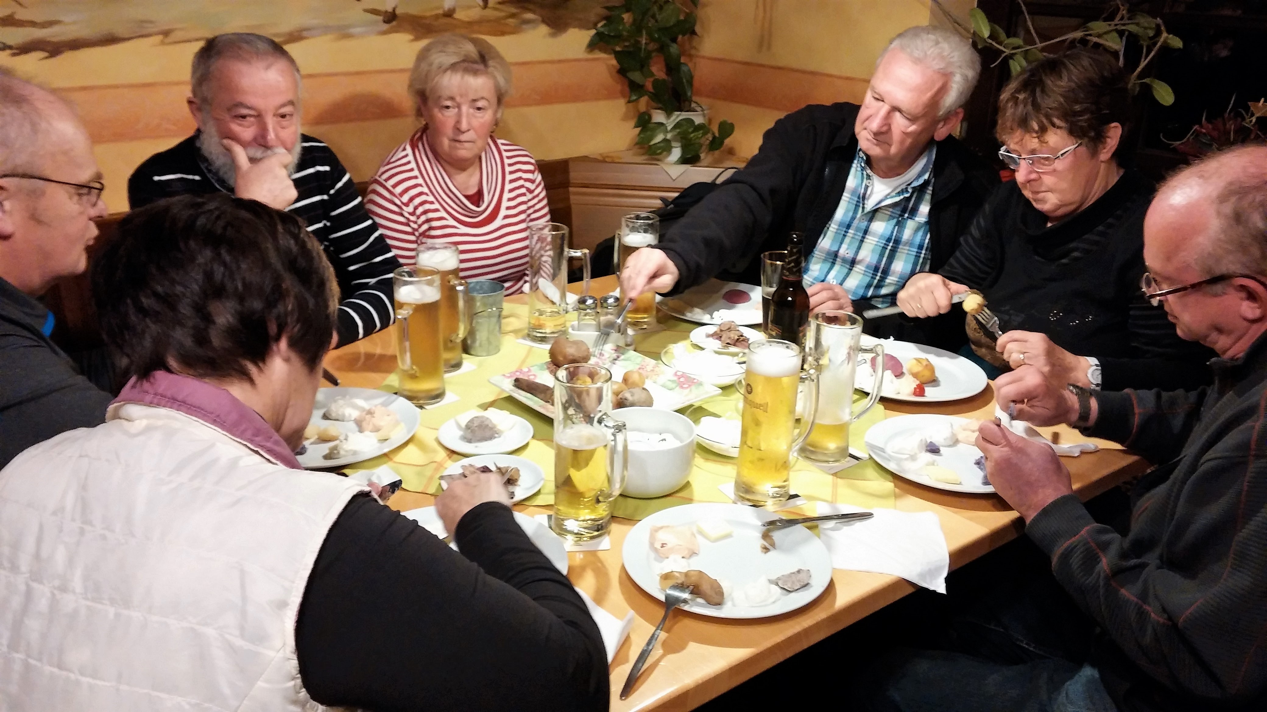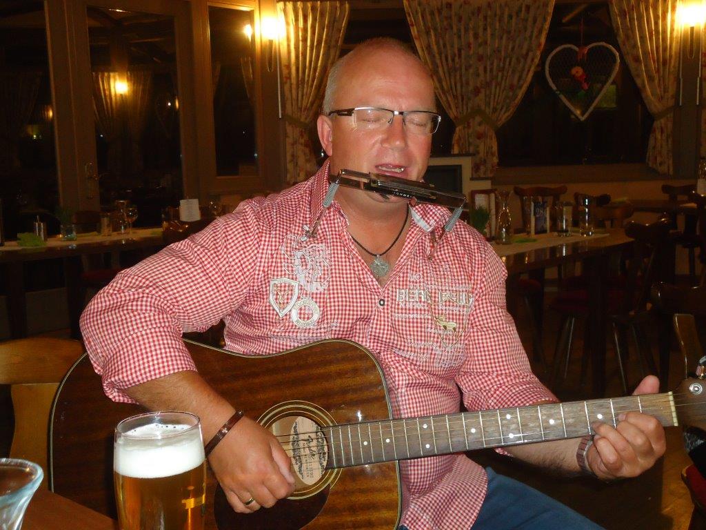 Nach dem kräftigen, teilweise scharfen Abendessen wurde gefachsimpelt, gewitzelt, getrunken und bei Gitarrenklängen von Jens Weck kräftig mitgesungen.
