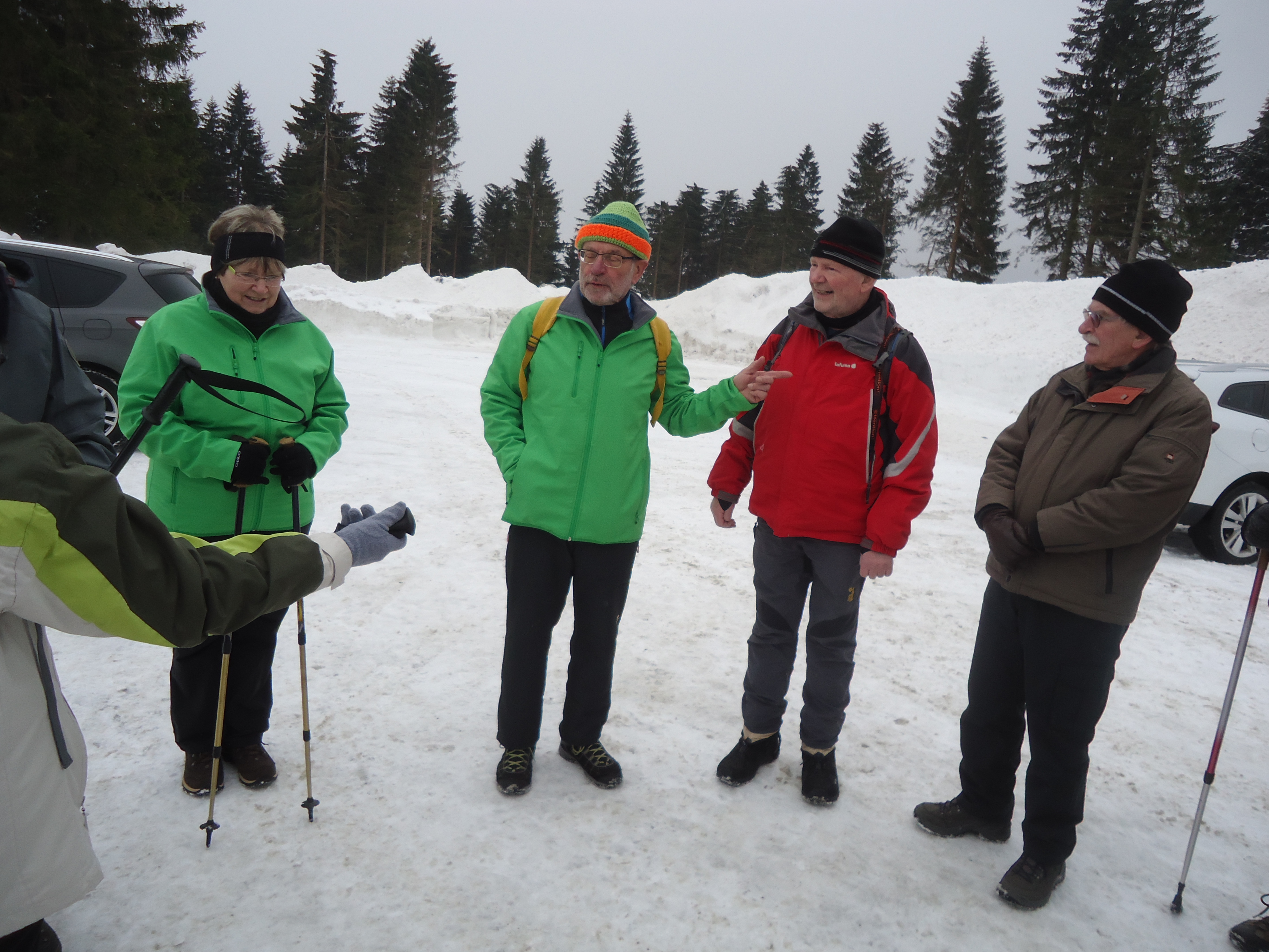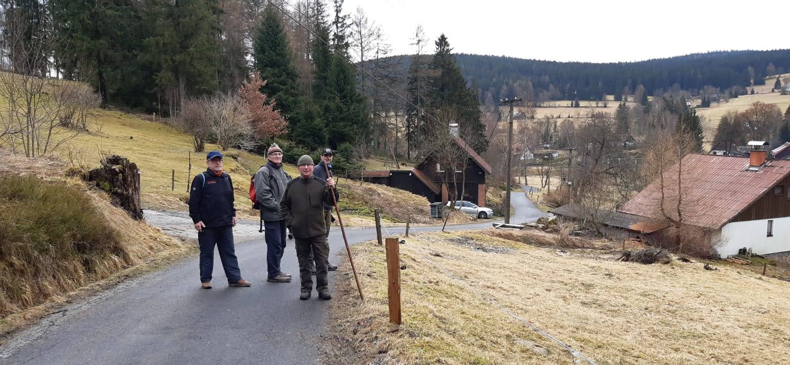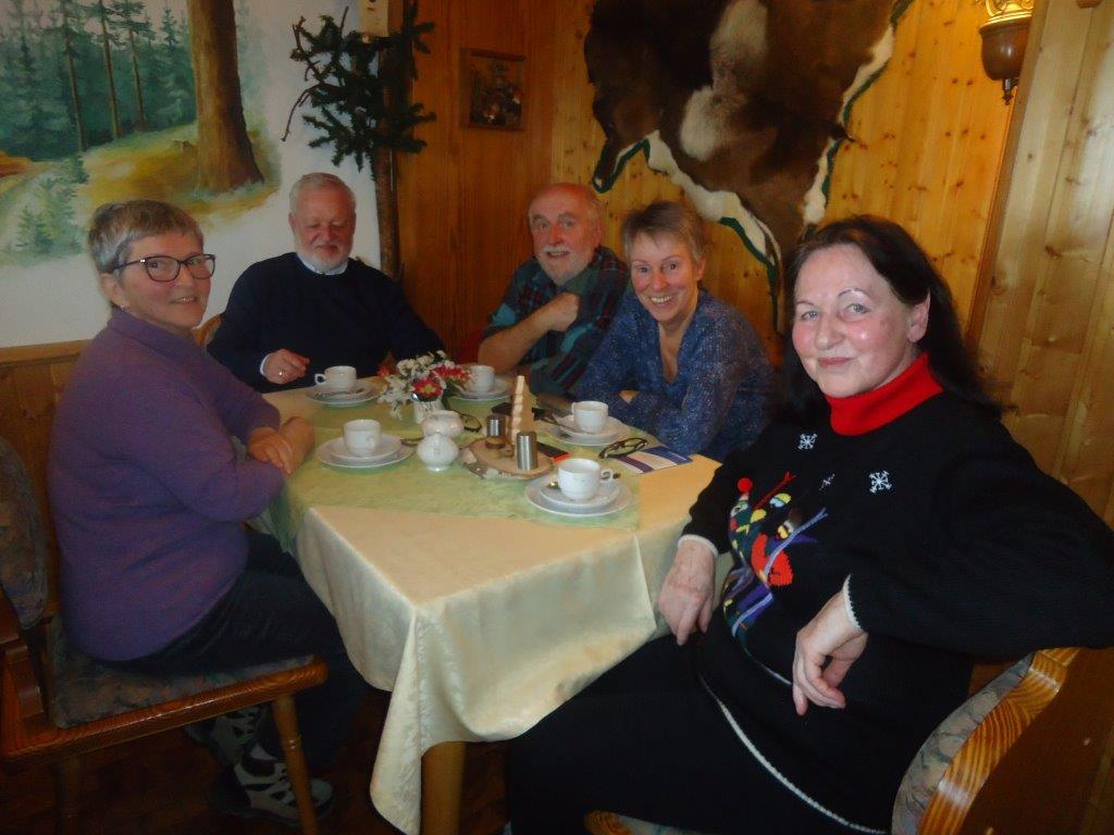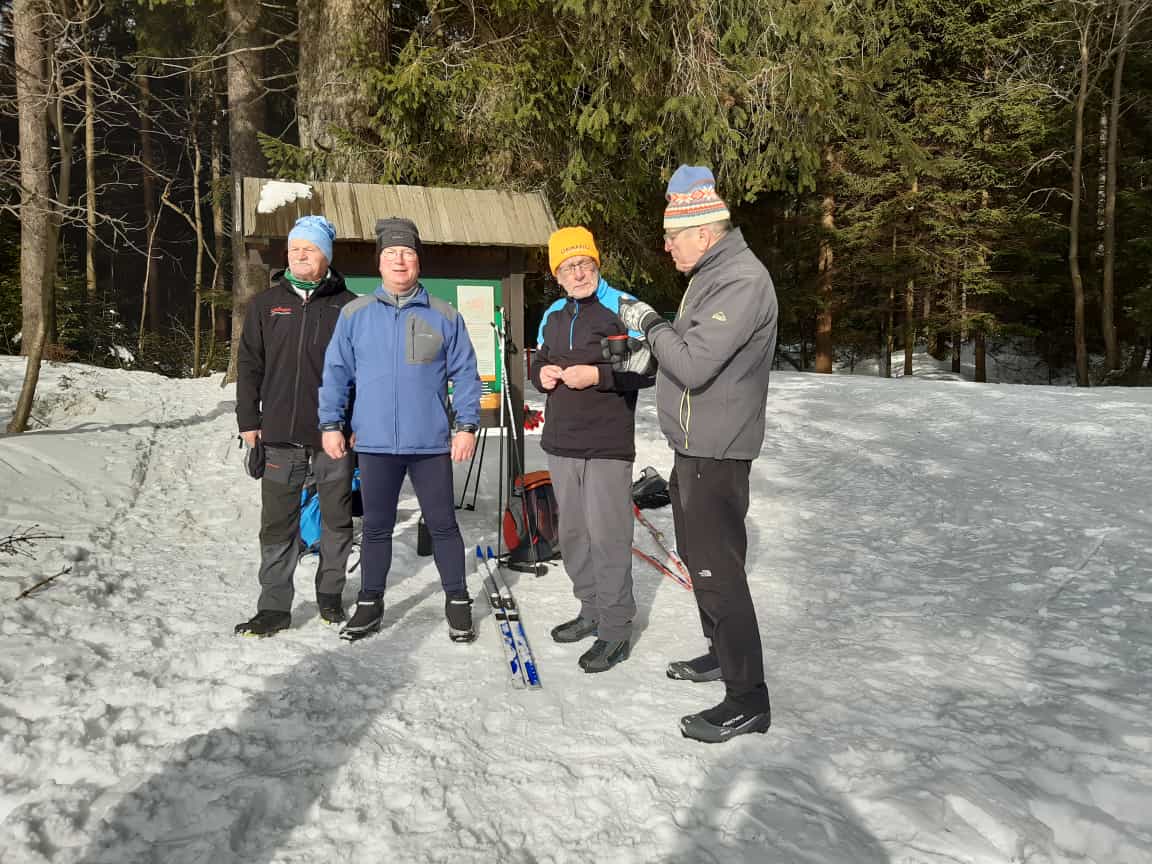 Nach Treff zum Mittagessen im Hotel starteten wir gegen halb zwei. Die eine Gruppe nahm die Wanderschuhe und die andere Gruppe die Skier unter die Füße. Jens und Dolores, Haidrun, Bernd und Rainer unternahmen eine wunderschöne Rundwanderung über etwa 7 km durch die verschiedenen Ortsteile von Neuhammer. An der kleinen Kapelle oben am Waldrand ließen wir unsere Blicke über die tiefverschneite Landschaft schweifen.