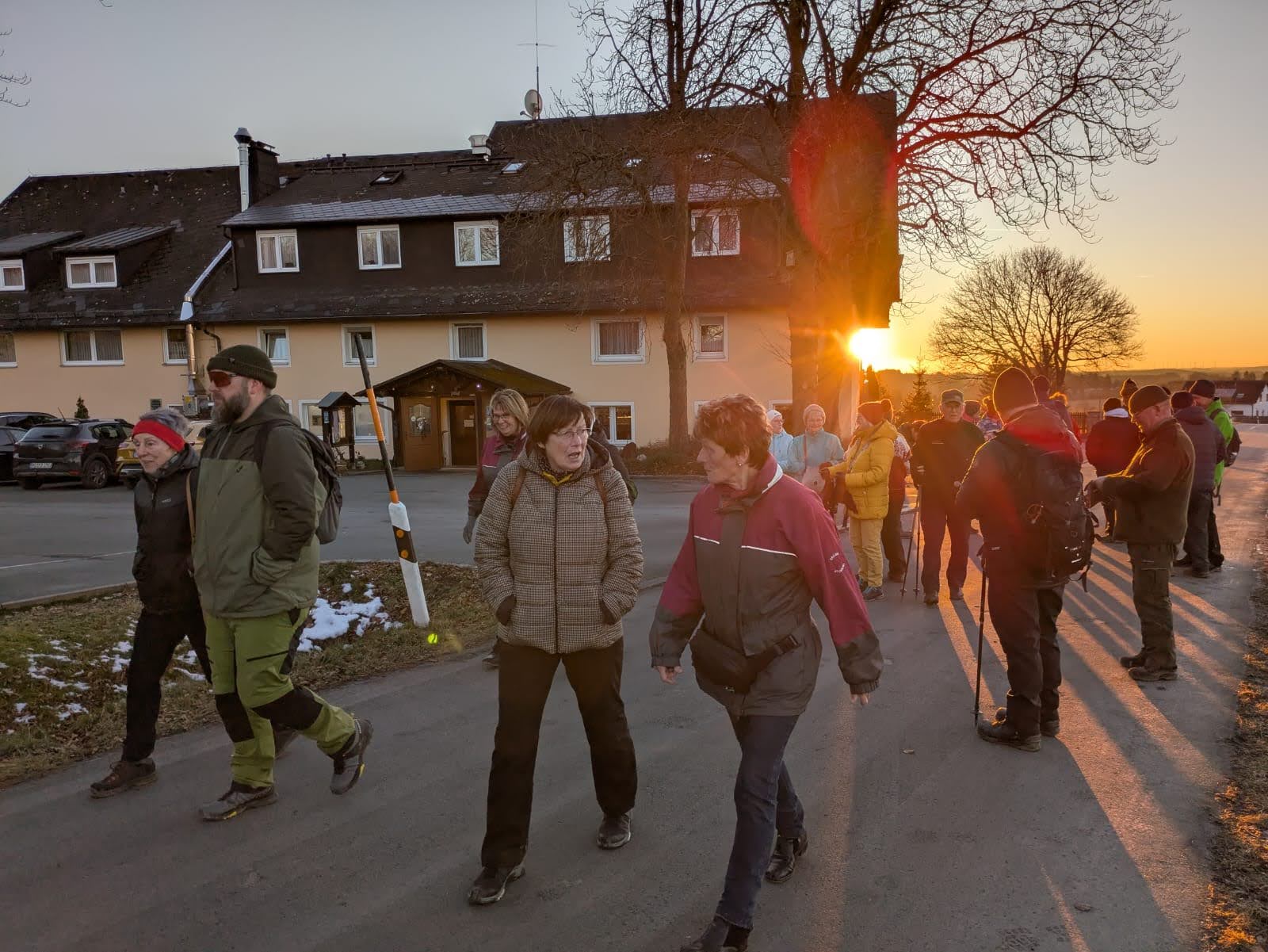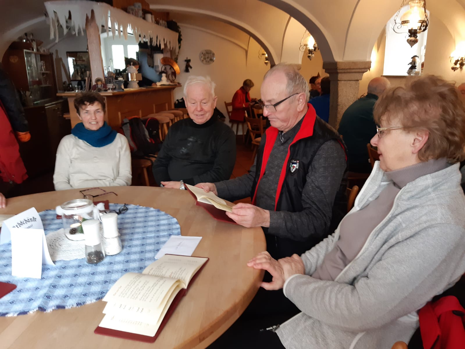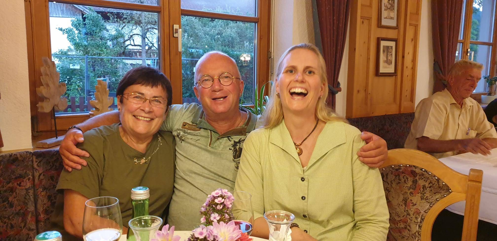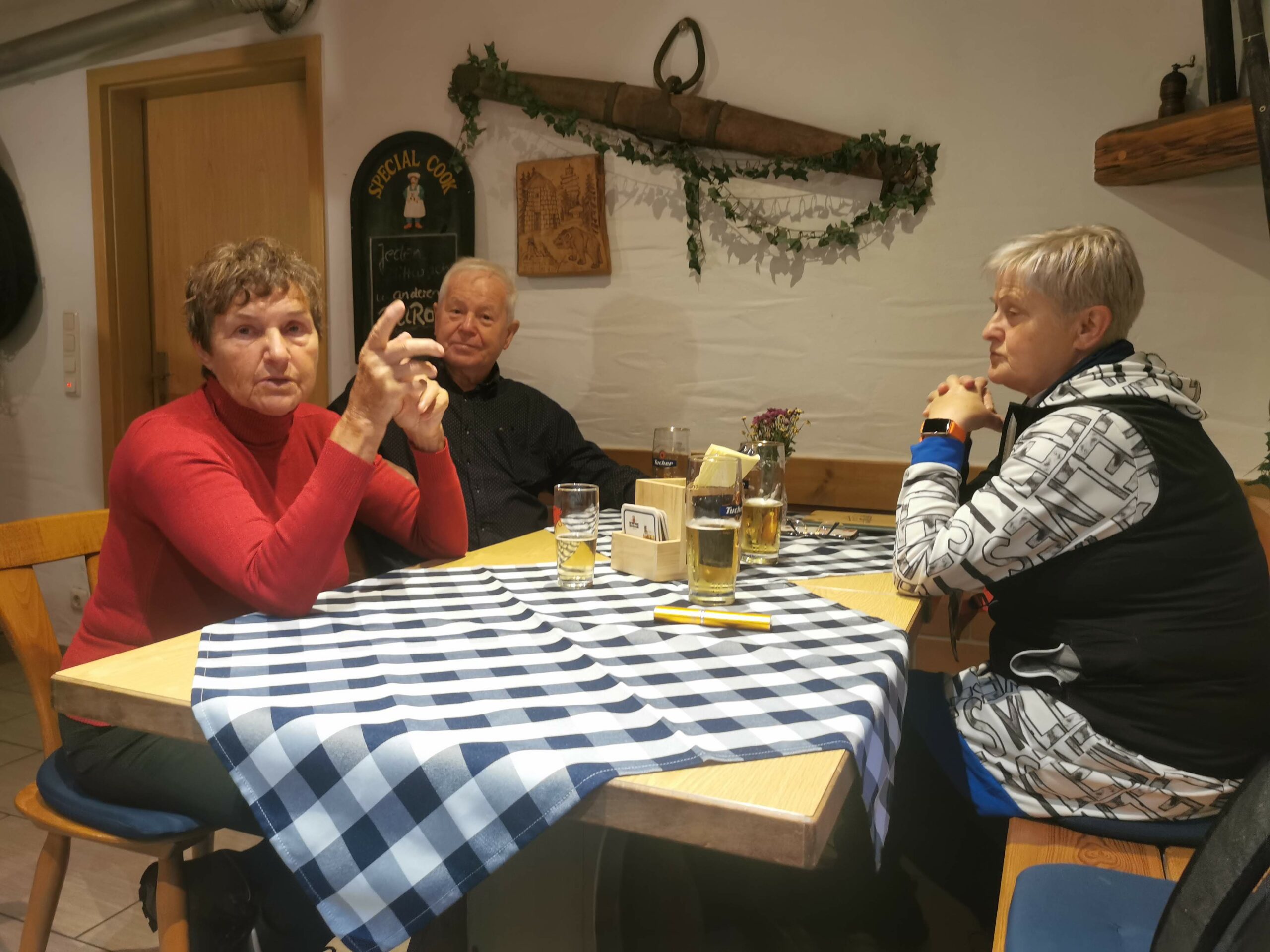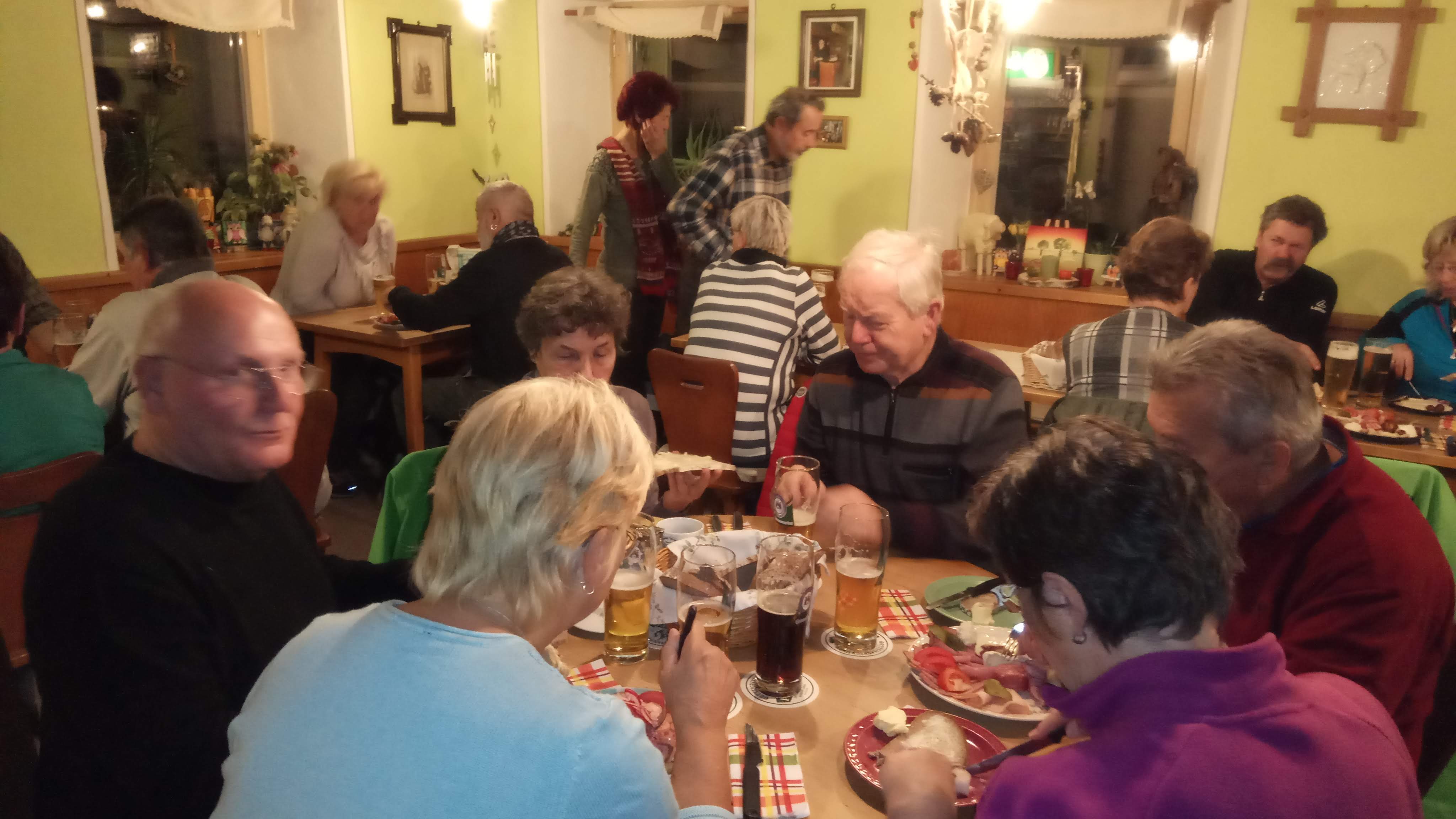 Nachdem uns das 3-köpfige Huster-Profiteam, das bereits mit Rucksack in Mühlleithen in die Spur ging, gegen 16.oo Uhr im Hotel erreichte, waren wir „vollzählig“.
