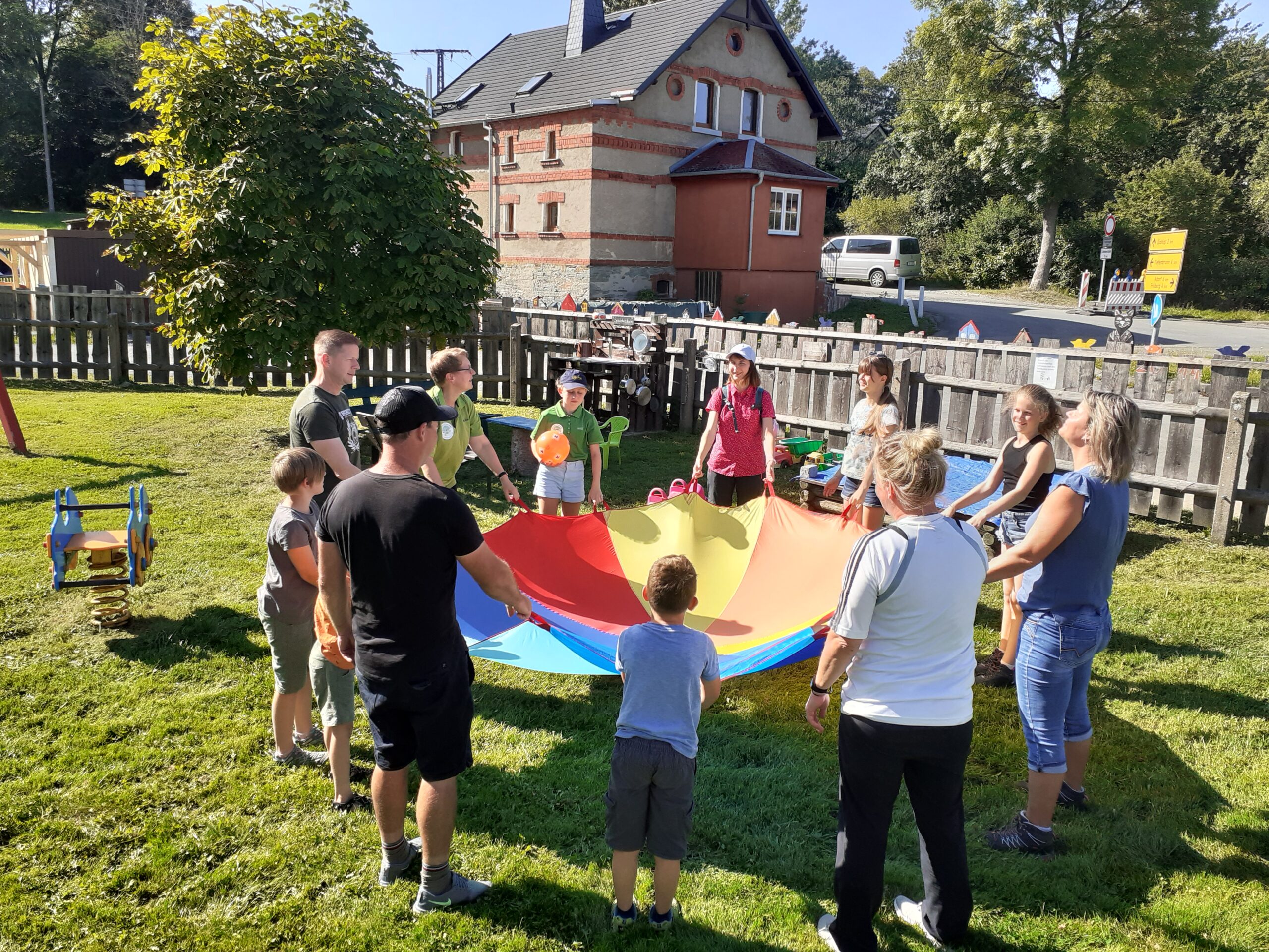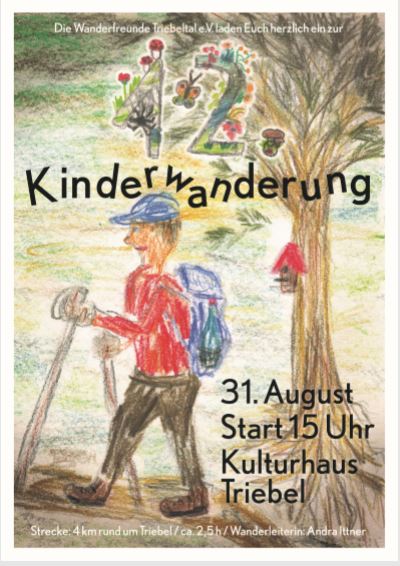 Traditionell am 1. Samstag im September luden die Wanderfreunde Triebeltal zur Kinderwanderung ein. Bei sonnigem Wetter um die 30 Grad trafen sich 14 Kinder und Jugendliche und 15 Erwachsene am Waldbad Triebel. Unter dem Motto „Waldolympiade“ ging es nach kurzer gymnastischer Erwärmung unter der Leitung von Rainer und Andra Ittner und der Ingrid Richter auf die ca. 2,5 km Strecke. An der ersten Station am Waldrand des Wiesengrundes hatten die Kinder bei kleinen sportlichen Einlagen wie Hindernislauf und Sackhüpfen viel Spass. Unterwegs am E3 erklärte Rainer die Wandermarkierungen. An der zweiten Station im Wald konnten alle beim Tauziehen ihre Kräfte messen. An der dritten Station wurden Luftballons aufgeblasen und hüpfen lassen. Mit einem großen Tuch wurden die Luftballons an die vierte Station gemeinschaftlich getragen. Hier an dieser Stelle unterhalb des Vipassana-Geländes wurden alle zum Kugel- und Gewichtestoßens aufgefordert. Schließlich ging es im Sprint über die Wiese hinunter zum Waldbad. Hier konnten sich alle bei Wienern und Speckfettbrot und Tee von den „Strapazen“ erholen und stärken. Anschließend bekam jedes Kind eine kleine Urkunde in Form einer gedruckten Postkarte überreicht. Einige Kinder nutzten die Möglichkeit im Anschluss baden zu gehen. Ein schöner erlebnisreicher Nachmittag ging zu Ende.