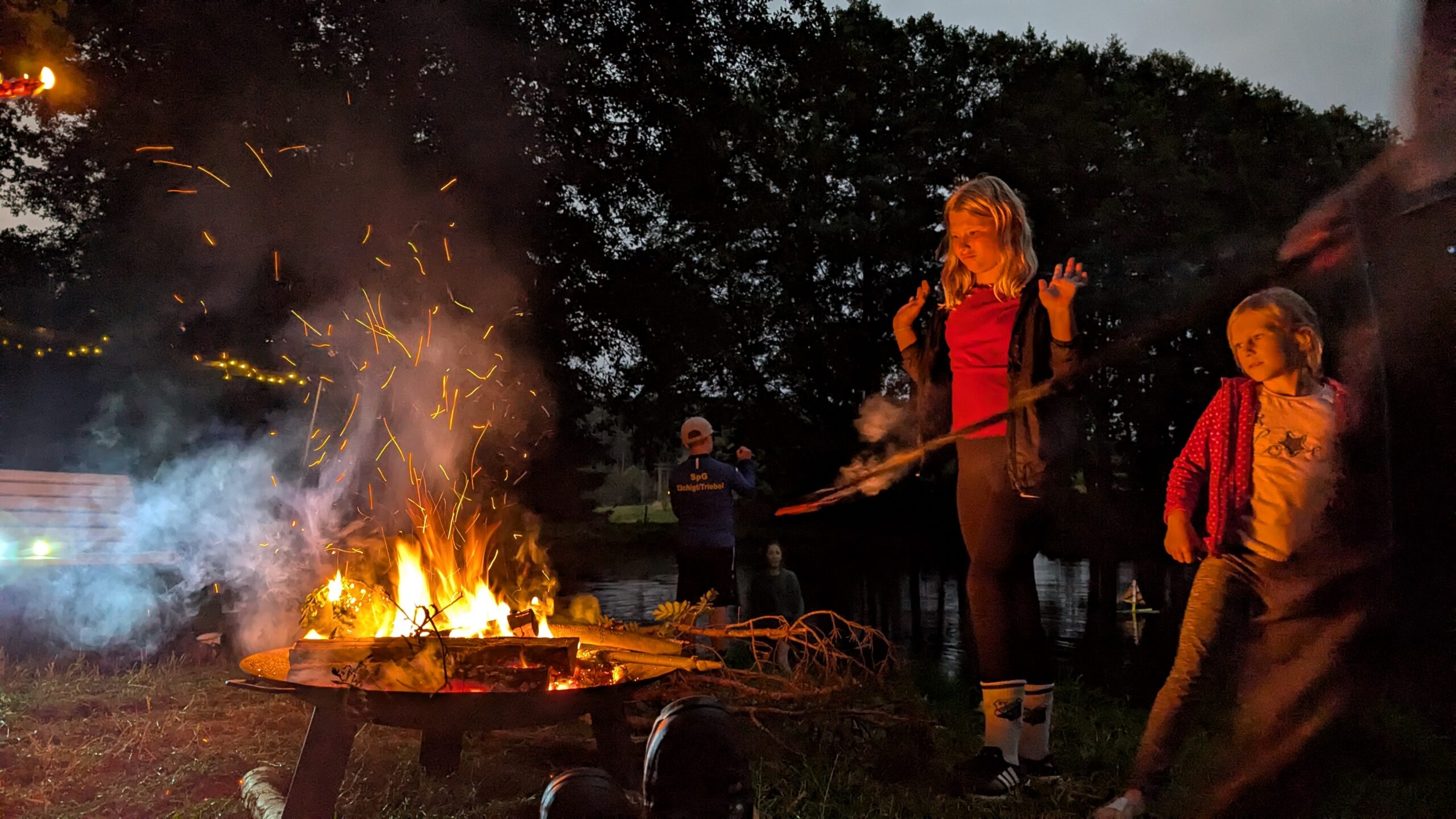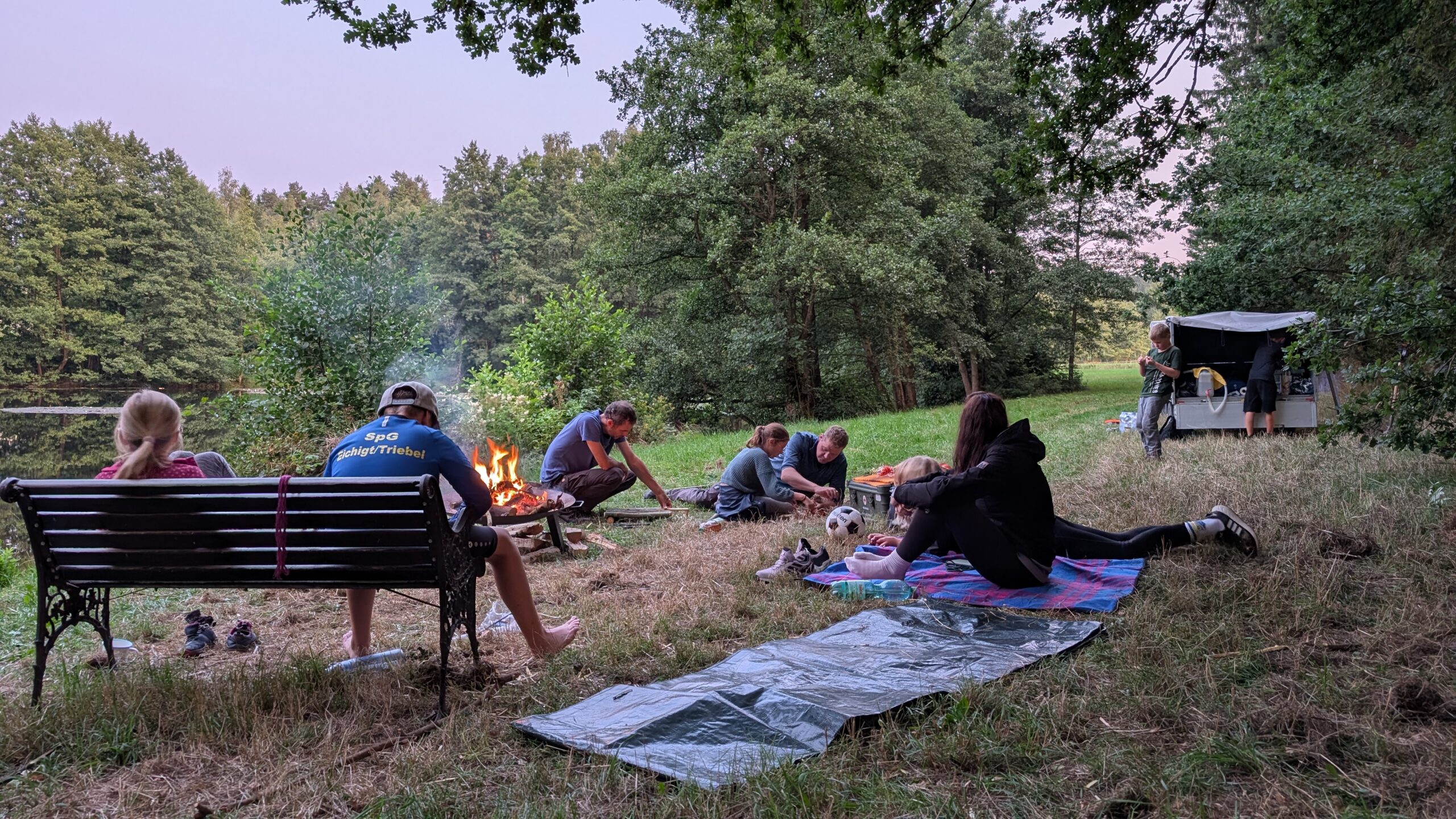 Bei bestem Wetter fand hier jeder eine Beschäftigung, egal ob am Wasser, beim Schnitzen, auf Bäume Klettern oder beim Brutzeln von Würstchen und Stockbrot am Feuer…