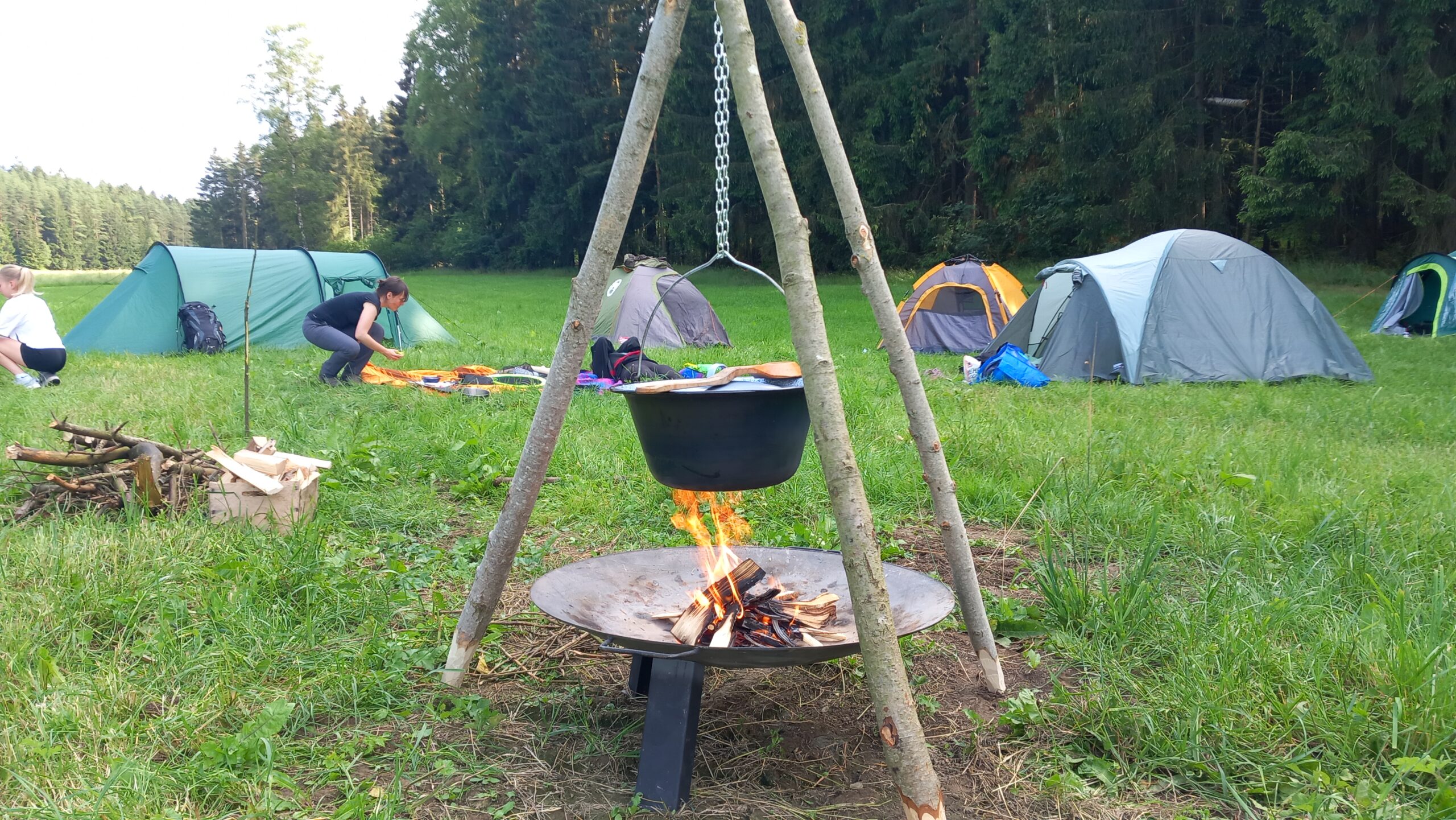Übers Siebenwegekreuz ging es neizu zum alten Badeteich am Obertriebler Stall, der uns einen super Lagerplatz bot. Vor lauter Eifer bauten hier manche sogar das falsche Zelt auf.