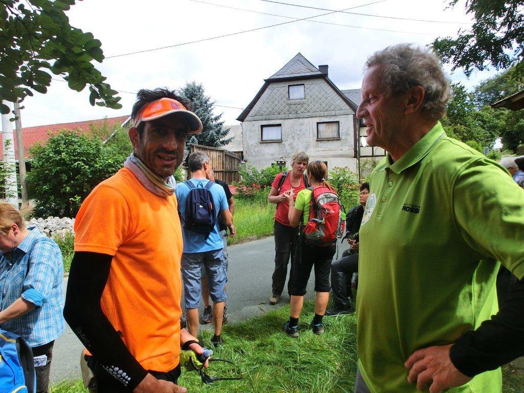 Jüngster Teilnehmer war gestern der erst zehn Monate alte Jannek Stefan Pfeffer, der sich allerdings tragen beziehungsweise schieben ließ. Seinen Uropa, die Triebeler Legende Harti Schmidt, hätte der Anblick sicher gefreut. Die Ehre des ältesten Wanderers wurde einmal mehr Willi Ronz aus Plauen zuteil. Er wird bald 91 Jahre alt. Der Wanderer mit der weitesten Anreise kam aus Garbsen bei Hannover. Mit dem aktuell in Oelsnitz ansässigen Amir Avdiv war erstmals ein Wandergast aus dem Kosovo in Triebel dabei.